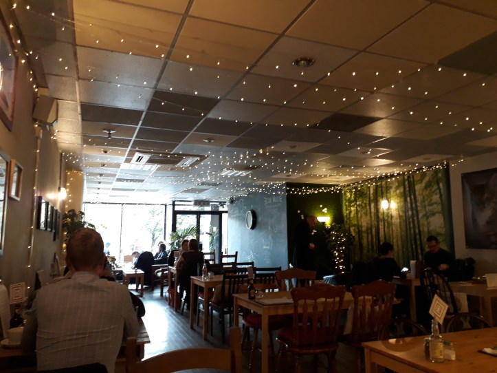 So today I popped in for lunch. The location has changed – it’s now on Grainger Street, so very handy for Central Station – but the vibe is very much the same. An impressive collection of cakes, snacks and main courses is available, and though I plumped just for rosemary chips (albeit they were slightly more on the potato wedge side), they were tasty and the coffee was good, and the place wasn’t too crowded, so I felt I could sit and relax. I’d like to go back when I have more time to try some of the more substantial fare (though the chips were blimmin filling enough), but for now I was just pleased to have a little blast of nostalgia (and some delicious grub).