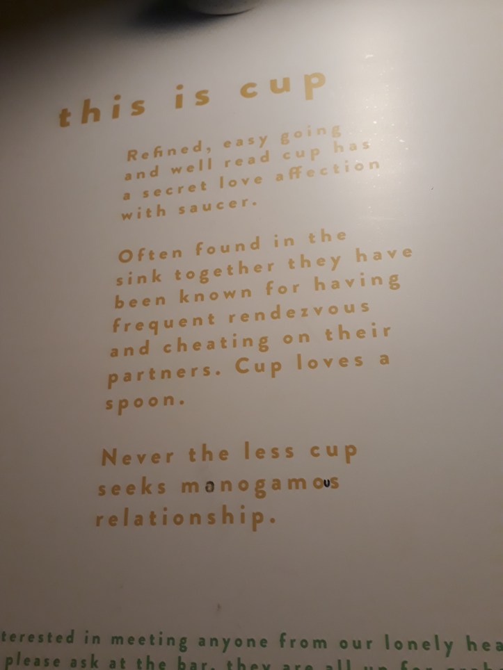 It’s a lovely little New York style cafe that does a great line in vegetarian food and cocktails. You can even buy some cups and plates made in the attached pottery, should you wish. I’ll definitely be going back!