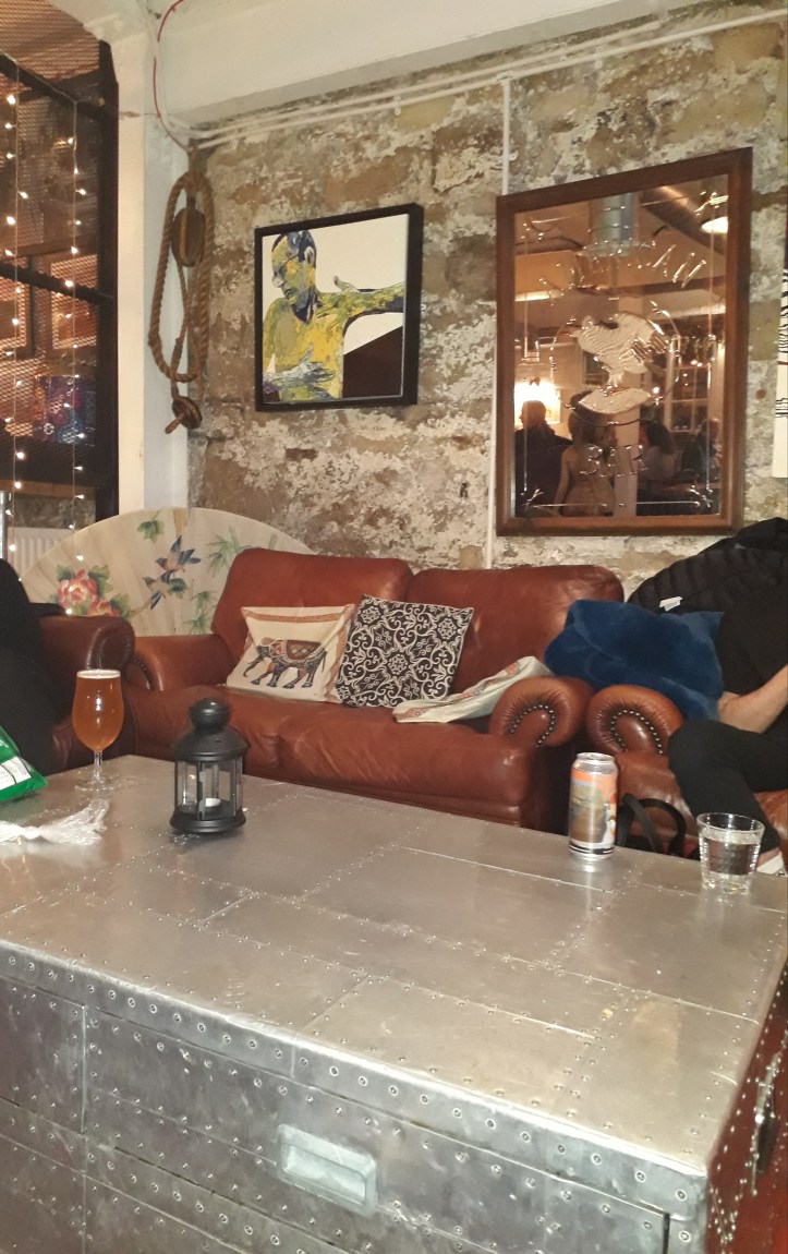 The vibe inside was laid back and friendly, and the space is very nicely laid out: a sort of mini-snug is partially cordoned off from the main space, allowing you to lounge on sofas near an open fire, but still feels part of the action and lets the place still feel spacious and airy. We didn’t eat there this time, though L tells me the food is good, with vegetarian options. The place offers a great selection of reasonably priced beers, is dog friendly (we had a very doggy day, since everywhere we went there were dogs, which is always a good thing), and the toilets were clean and in good working order, which is a thing I increasingly care about.