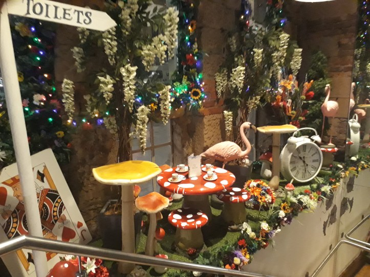 You may remember before Christmas I visited the pop up bar Miracle on Grey Street. Well, now the holidays are over it has transformed into an Alice in Wonderland theme, so my friend M and I decided to make a return visit.