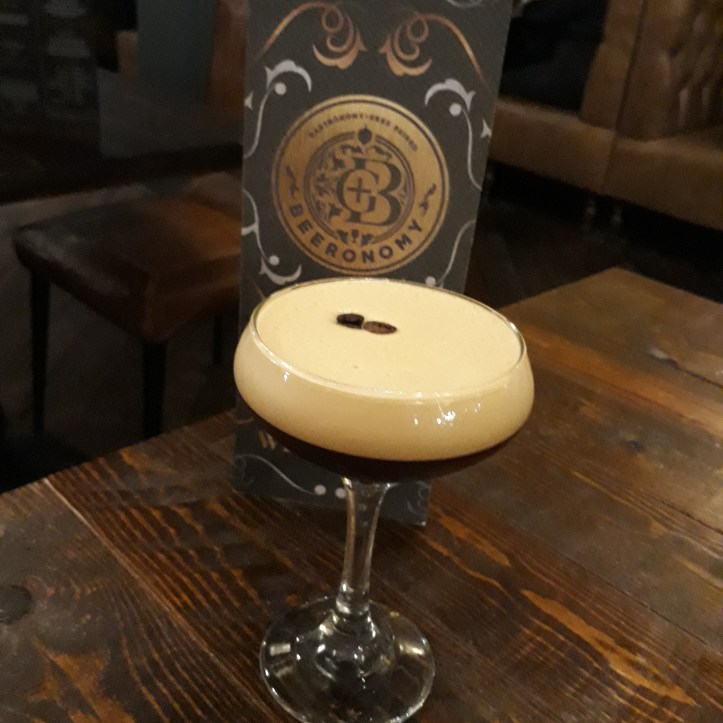 There was a two for one offer so I started with my first ever pornstar martini (glad I tried it, but too sweet for me and I am a bit squeamish about seeds – they look like alien teeth to me* – so I didn’t love it, though I could get used to my drinks coming with a prosecco shot). I also had an espresso martini, which was much more to my taste.
