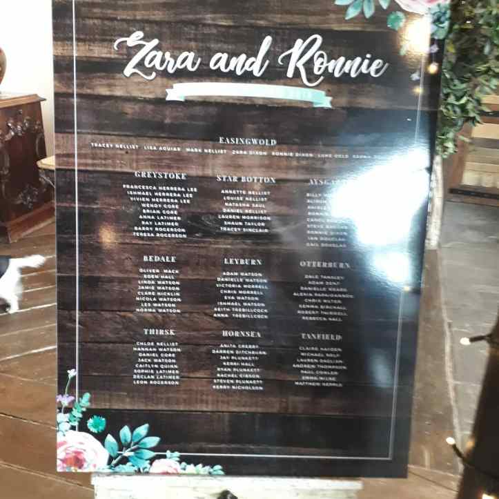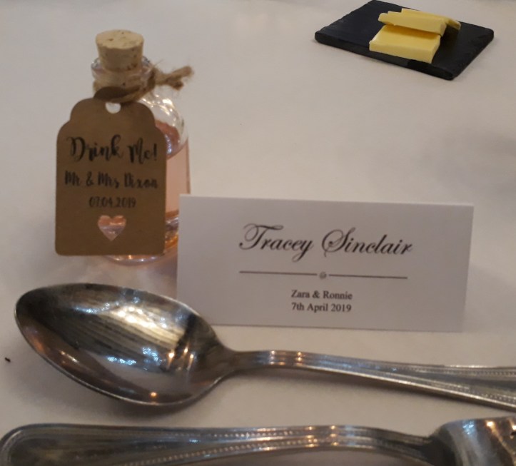 The Old Barn at the South Causey Inn was a beautiful venue: rustic and elegantly decorated without feeling too full on or kitchy, and Z and the family had apparently designed many of the flourishes themselves. (The speeches were full of many jokes about Z’s fondness for organising, but the girl deserves her props, as the wedding was full of thoughtful touches, including providing flip flops for the women at the evening do, so that many of the guests could change out of the perilously high heels Geordie women are so fond of: one woman came up to me before the dancing started and said, ‘we’re all smiling and six inches shorter’. Honestly, this should be a widely adopted trend). (I mentioned this on Twitter and someone said ‘this is the best wedding idea I ever heard’).