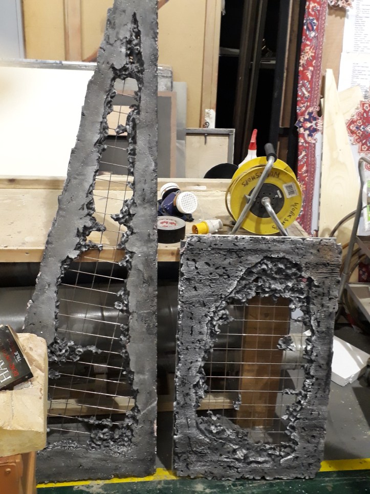 The tour was run by Production Manager Chris Durant, who took our little group of visitors through the various processes a set goes through before it reaches the stage – from the designer’s idea through to scale models through to transporting and assembling the various bits in different theatres throughout the country. We were shown props and drawings from previous shows (including A Christmas Carol), and walked round the set-in-progress for the upcoming A Thousand Splendid Suns, which is one of the most ambitious sets the team have ever produced, but which is currently lying around the warehouse in bits as it’s being finalised. It’s hard to look at a bunch of bland, barely painted props and see how they fit together to create a workable backdrop to a play, and I admit I was left marvelling at the kind of minds that could do so.