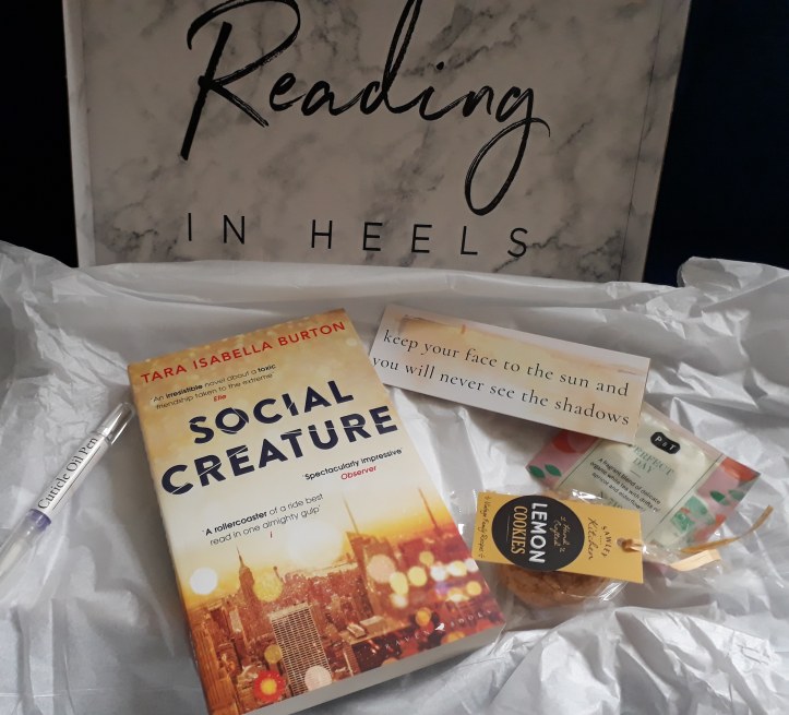 My first box arrived this week, and I was (mostly) pleasantly surprised. The contents included a book I didn’t own and hadn’t even heard of (given how many books I buy, duplication is always a concern when I sign up to book boxes), Social Creature by Tara Isabella Burton, which looks interesting. A herbal tea sample was given away quickly (as I detest tea, but that’s hardly their fault), and some bookmarks went onto my ever-increasing pile of bookmarks, but the cookies were tasty, if somewhat crumbled in delivery.