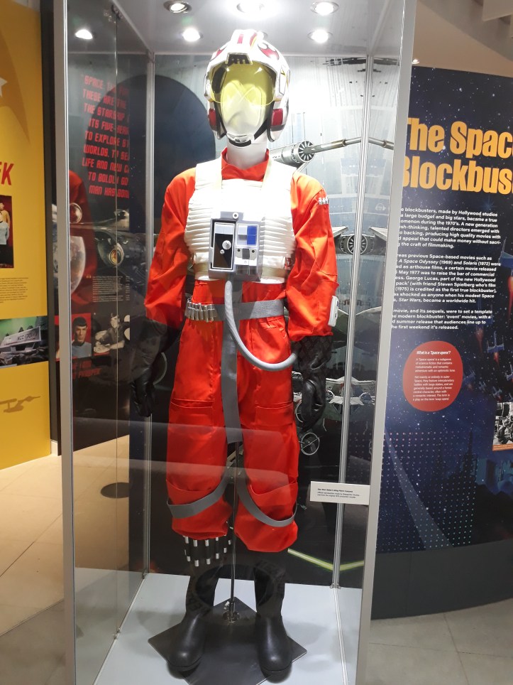 It was a small but fun show that centred as much on space in the imagination as in reality: space as seen in comics, books, film and TV – so an X-Wing pilot uniform is displayed next to an astronaut suit.