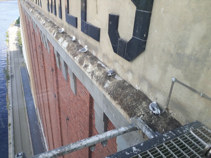 Perhaps best of all though was the sight from the 4th floor viewing platform – the kittiwakes! Newcastle’s kittiwake population is unusual for being so inland, and for nesting on urban structures, and to see a row of them lined up so neatly, preening and sleeping, was a genuine treat that my photos don’t do justice.