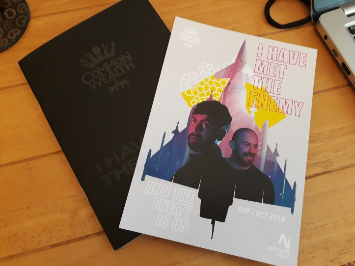 I’ve posted earlier about Northern Stage’s Byker programmeNorthern Stage’s Byker programme (and wrote a piece for The Stage on it earlier this month), and last night the show finally rolled around, so my friend L and I headed to Byker Community Centre to see I Have Met The Enemy (and the enemy is us). An ambitious show that tackles Britain’s role in the arms industry through the lived experience of the cast, it has some bold touches and striking design, but I admit it very much Wasn’t My Thing: never a fan of being asked to wander round while vaguely theatrical things happen in other parts of the room, I found it a little slow and unfocused for my taste, with admittedly powerful moments too scattershot to be truly effective. (Review here.)