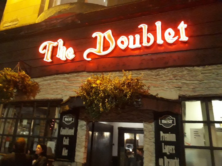 We started off at The Doublet on Park Road. When I lived round the corner – um, several decades ago – I remember this place had a rep as a bit of a dive, but it seems to have transformed itself into a cosy wee pub, now, and certainly a totally fine place to have a pre-meal pint.