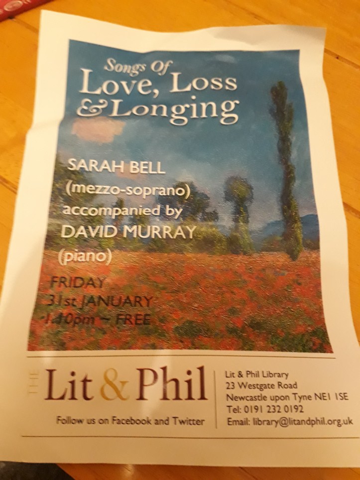 One place I have been desperate to check out since I moved back is Newcastle’s Lit & Phil – the literary and philosophical society. An old building tucked away just round the corner from Central Station, it’s one of those venues that every time I walk past I think – ooh, must check that out – and, um, don’t. Anyway, since two of my resolutions for the year were ‘go to new venues’ and ‘go to things that aren’t your usual taste’, finding out they were hosting a series of free talks and concerts seemed the perfect excuse.