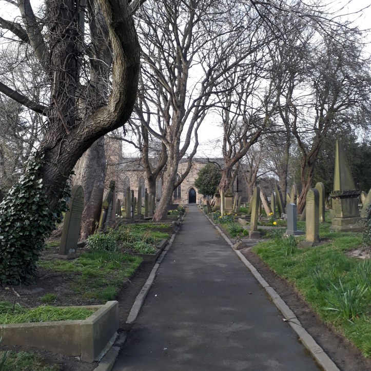 On one of my allowed daily walks, I finally took the opportunity to explore the graveyard at the end of my street. I can’t recall the name of the church (although, embarrassingly, I think it may have been the site of both at least one family wedding and one funeral), but the graveyard is peaceful and isolated enough that I can wander without coming within six feet of anyone.