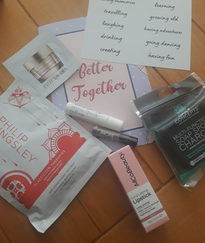 A bit of a mixed bag this month, though partly due to my own tastes – I very rarely wear lipstick, so the lipstick is going straight into the ‘give to friends’ box, as is the brow brush. But I do like Philip Kingsley so the hair masque will get used, and the This Works stick is tiny but smells divine…