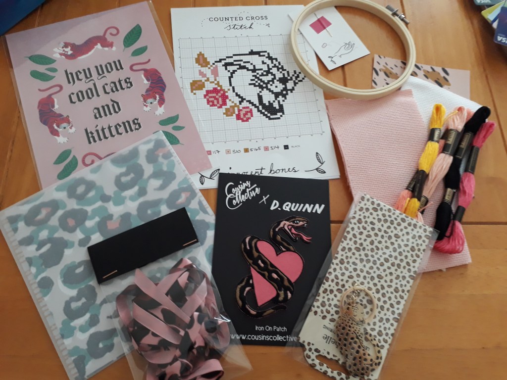 Mood by Innocent Bones comes in a standard box or cross-stitch special – obviously I chose the latter – and includes a cross-stitch kit (with everything you need to do the pattern) as well as some other themed and crafty goodies. Not sure I will use all of these – then again three months ago I couldn’t imagine myself picking up a needle so who knows what lockdown will bring! – but it’s definitely a cute package to arrive in the post and the pattern is beautiful.