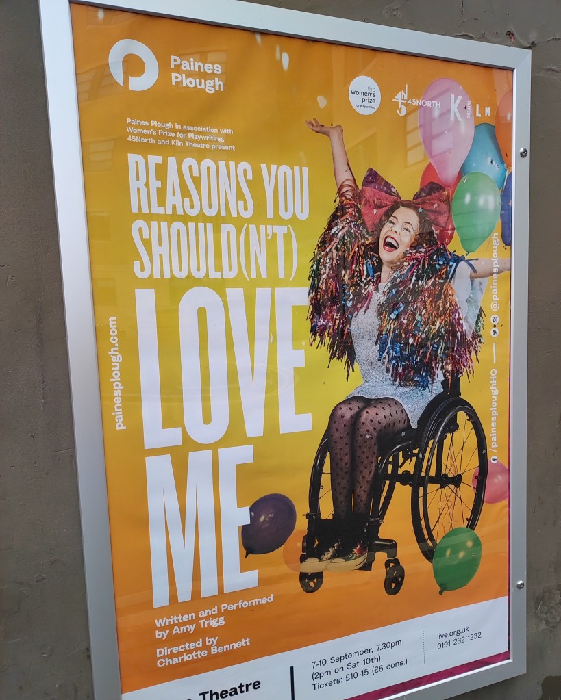 And last night’s show is a great excuse to post! I’d heard good things already about Reasons You Should(n’t) Love Me, a one-woman show written and directed by Amy Trigg, which is at Live Theatre from Wed 7th to Saturday 10th September, before embarking on a national tour. And it didn’t disappoint.